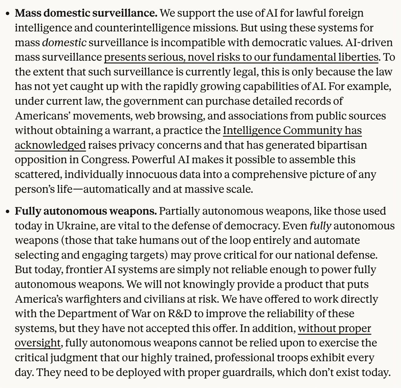 Feb 26: Anthropic publishes a statement